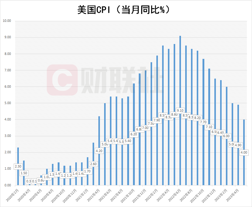 财联社6月13日电,美国5月CPI同比上升4%,连续第11次下降,创2021年3月以来新低,预估为4.1%,前值为4.9%;5月CPI环比上升0.1%,预估为0.1%,前值为0.4%。美国5月核心CPI较前月上涨0.4%,较上年同期上涨5.3%,均符合预期。