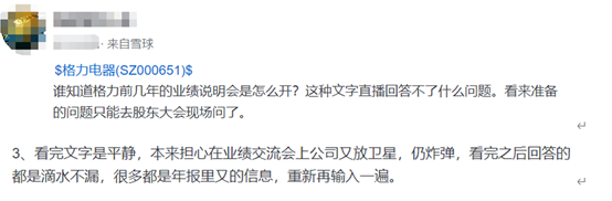 但也有部分投资者在论坛表示了对此次业绩会的不满,认为公司在“糊弄”。