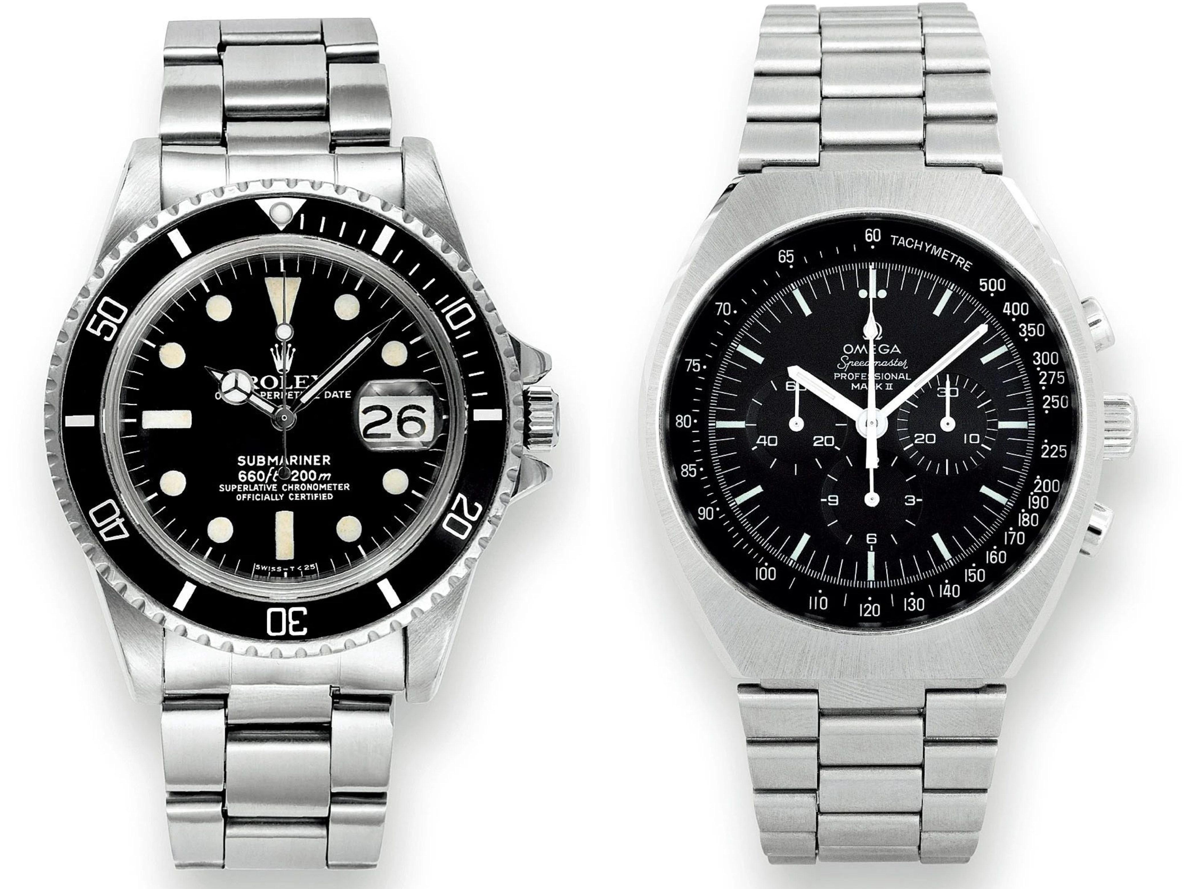 典型的70年代作品,如欧米茄的Speedmaster Mark II和Ploprof至今仍受欢迎,然而大部分买家仍偏爱久经考验之作,也就是劳力士。70年代Submariner潜航者型的销量接近Datejust日志型和Speedmaster超霸的总和。