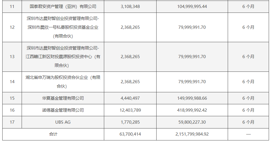 财联社6月16日电,金雷股份公布向特定对象发行股票发行情况报告书,发行人和主承销商确定本次发行股票的发行价格为33.78元/股,发行数量为6370.0414万股,募集资金总额约为21.52亿元。