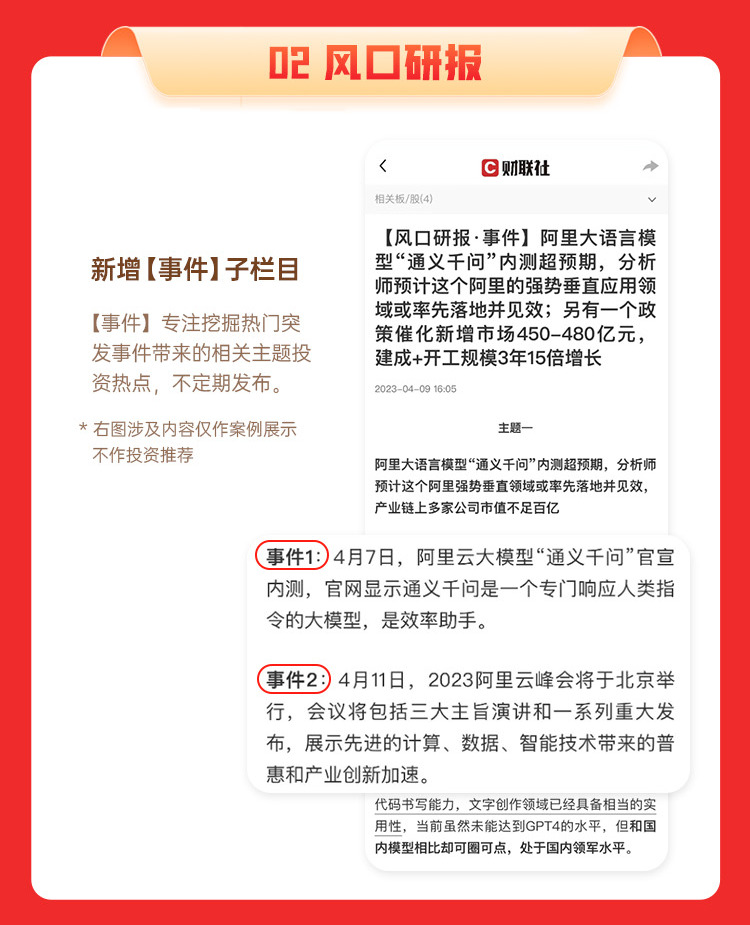 活动前夕,VIP团队针对《风口研报》进行进阶升级,新增【事件】子栏目,专注挖掘热门突发事件带来的相关主题投资热点,依据事件影响力不定期发布。