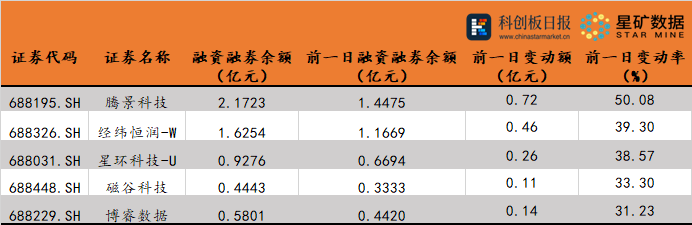 数据|科创板两融余额合计1096.04亿元 腾景科技较上一交易日变动率最大