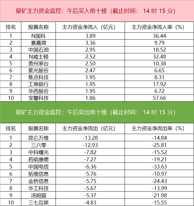主力资金监控:昆仑万维净卖出超13亿元