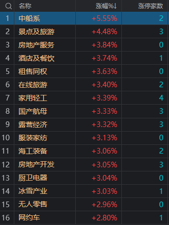 财联社6月27日电,市场早盘震荡反弹,三大指数涨跌不一,沪指偏强。盘面上,中船系个股大涨,中国动力、中船科技涨停。地产产业链个股集体走强,中南建设、中迪投资、好太太、哈尔斯等涨停。氢能源概念股震荡走高,京城股份、美锦能源、华电重工等多股涨停。AI概念股展开反弹,拓维信息、万达电影涨停。旅游等消费股开盘冲高,曲江文旅、长白山、西安旅游涨停。下跌方面,机器人概念股陷入调整,德恩精工、丰立智能等跌超5%。总体上个股涨多跌少,两市超4100只个股上涨。沪深两市今日成交额5177亿,较上个交易日缩量1171亿。板块方面,中船系、旅游、房地产、家用轻工等板块涨幅居前,仅电力和自动化设备两个板块下跌。截至上午收盘,沪指涨0.93%,深成指涨0.57%,创业板指跌0.05%。北向资金方面,沪股通早盘净流入2.65亿,深股通早盘净流出24.94亿。