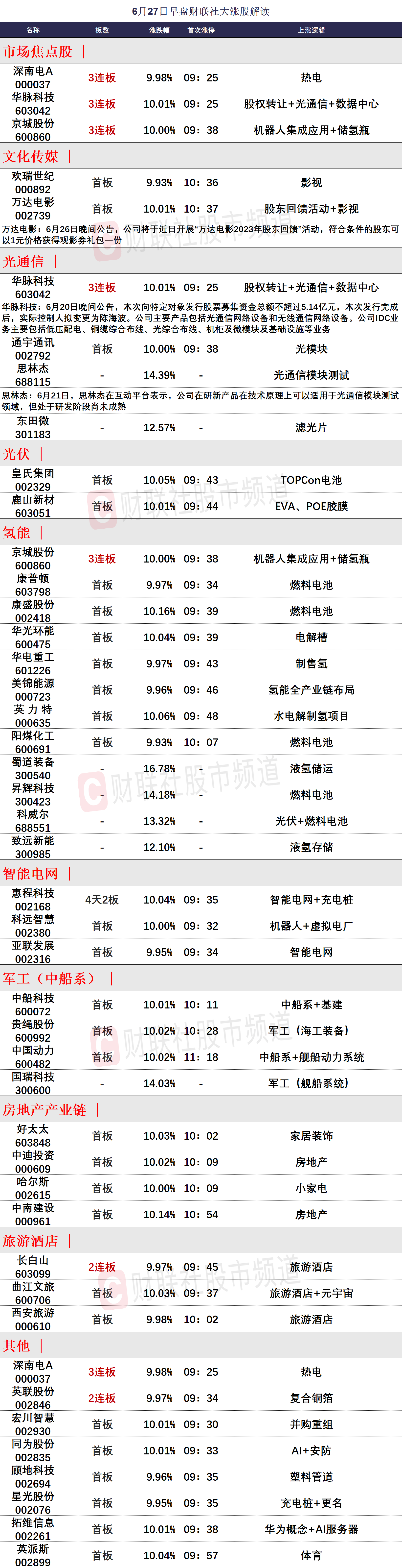 6月27日午间涨停分析