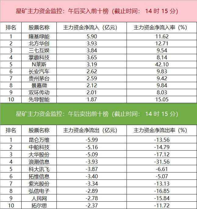 主力资金监控:昆仑万维净卖出超5亿元