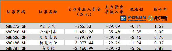 数据|科创板主力资金净流出367股 *ST富吉流出率最高