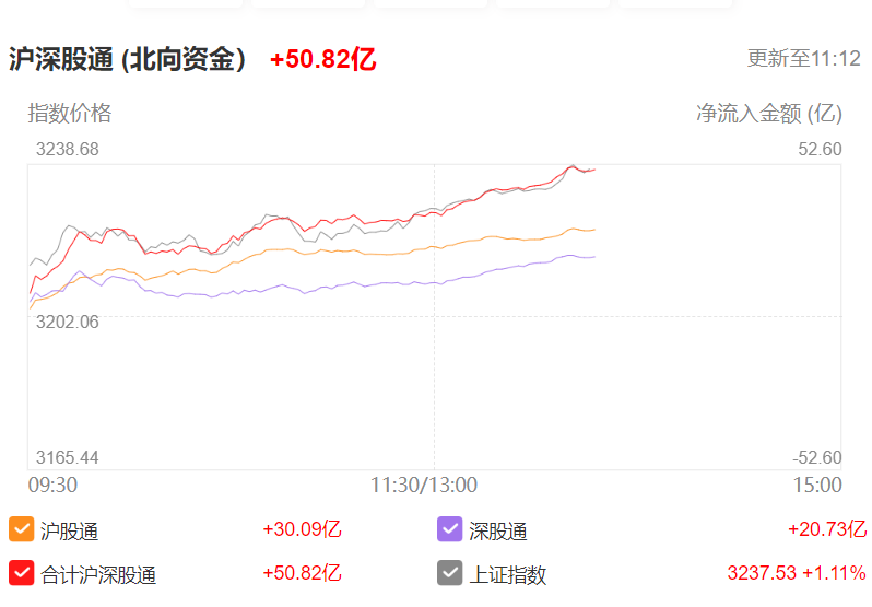 财联社7月3日电,截至目前,北向资金净流入超50亿元,其中,沪股通净流入超29亿元,深股通净流入超20亿元。