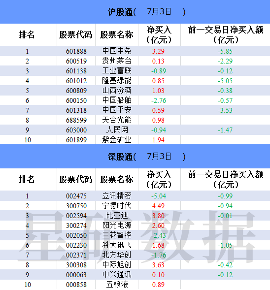 财联社7月3日电,北向资金今日净买入26.85亿元。宁德时代、比亚迪、中际旭创分别获净买入4.49亿元、3.8亿元、3.63亿元。立讯精密净卖出额居首,金额为5.04亿元。