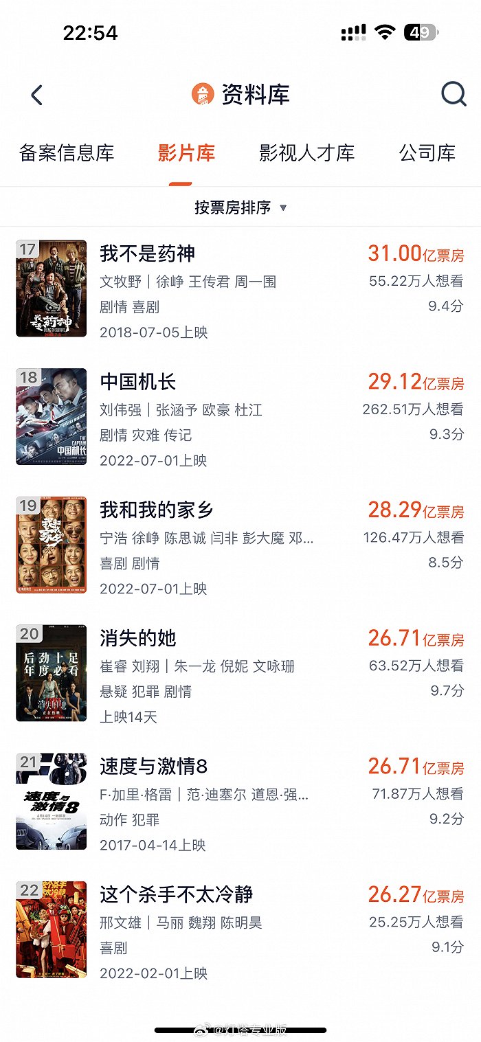 电影《消失的她》票房超26.71亿 进入内地影史票房榜前20
