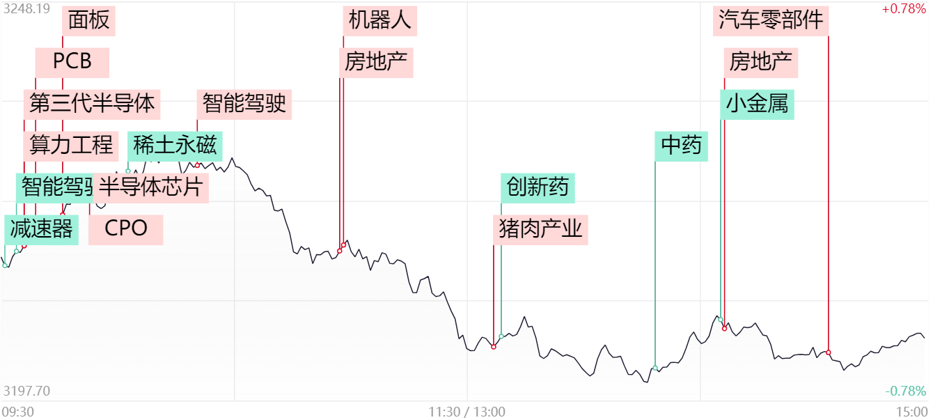 财联社7月7日电,上个交易日,三大股指集体低开,股指短暂拉升后,大金融、消费等权重股拖累股指再度翻绿,午后地产板块走强,股指跌幅有所收窄。沪深两市成交额8198亿,较前日缩量480亿。1)机器人板块走出积极修复行情,爱仕达、科力尔走出反包板,双飞股份、华纬科技、五洲新春涨停,中威电子、德迈仕、步科股份涨超10%。天风证券指出,近期,行业发生了明显的变化,人形机器人有望实现0到1的突破。2)汽车产业链近期高热度延续,智能驾驶方向继续领涨,浙江世宝5连板,众泰汽车4天3板,瑞玛精密3天2板,泰祥股份、浙江黎明涨停,超达装备大涨13%。工信部近期明确,将在今后一段时期发布新版的智能网联汽车标准体系指南,并将启动智能网联汽车准入和上路通行试点。3)算力硬件开展反弹,PCB以及存储芯片方向领涨,弘信电子、拓维信息、金安国纪、东方材料、天津普林、德明利、万润科技涨停,香农芯创大涨14%。7月5日,浙江发布《关于促进平台经济高质量发展的实施意见》,推动算力基础设施建设,优化人工智能算力平台布局。4)房地产板块盘中走强,金科股份4天3板,空港股份、荣盛发展、中南建设涨停,财信发展、铁岭新城涨超6%。申万宏源证券指出,行业正加速出清,格局优化进一步加强。