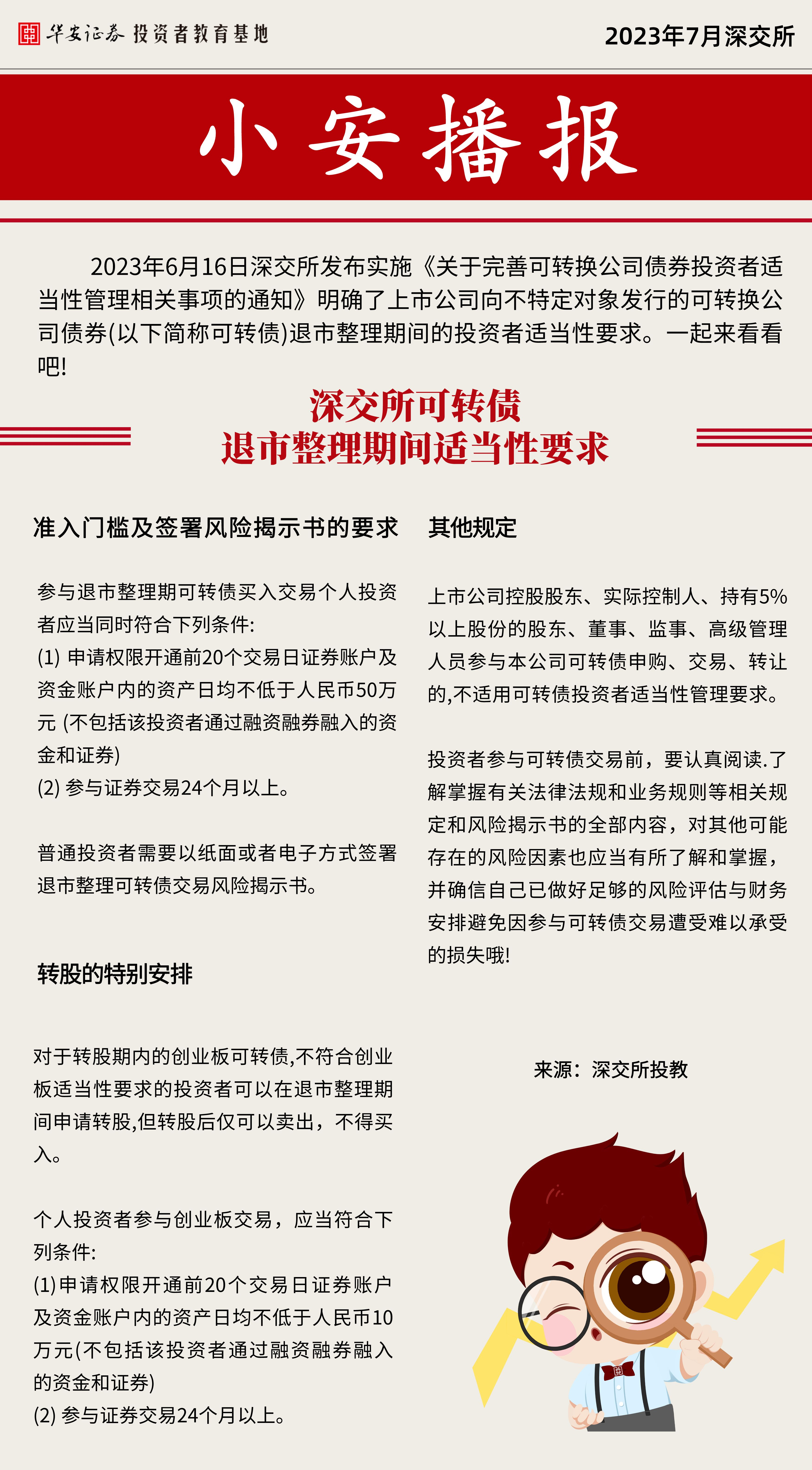 小安播报 | 深交所可转债退市整理期间适当性要求