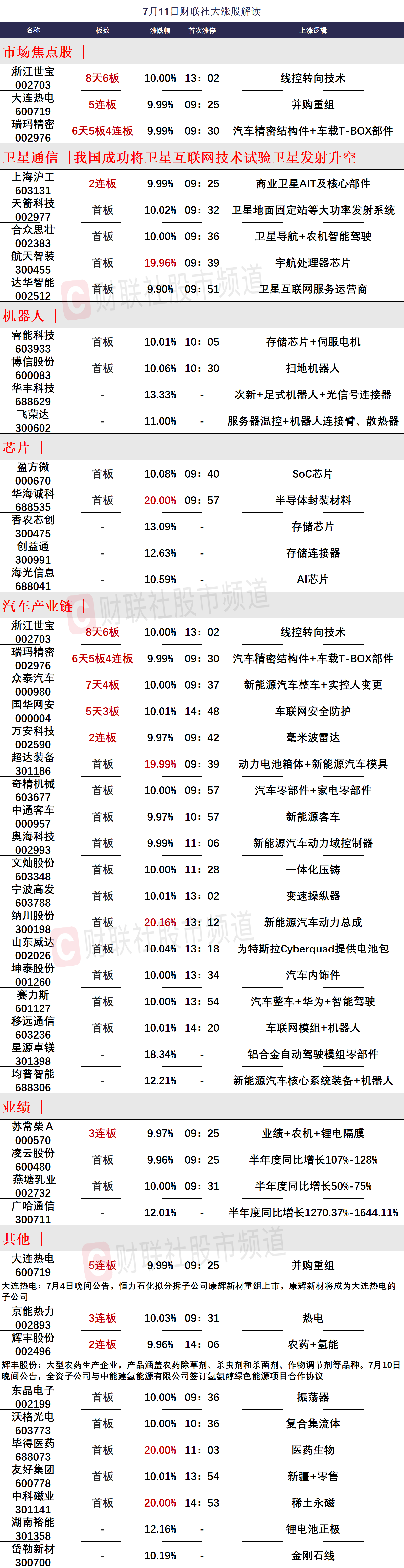 今日共36股涨停,连板股总数7只,15股封板未遂,封板率为70%(不含ST股、退市股及未开板新股)。个股方面,智能驾驶概念股浙江世宝8天6板、瑞玛精密6天5板、国华网安5天3板、万安科技2板,并购重组的大连热电5板,业绩超预期的苏常柴A3板,电力股京能热力3板,汽车产业链的众泰汽车7天4板、超达装备创业板首板,卫星通信板块上海沪工2板、航天智装创业板首板。今日收涨个股3508只,收跌个股1293只。