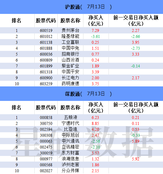 财联社7月13日电,北向资金今日大幅净买入135.85亿元。宁德时代、贵州茅台、五粮液分别获净买入8.85亿元、7.29亿元、6.23亿元。隆基绿能净卖出额居首,金额为3.61亿元。