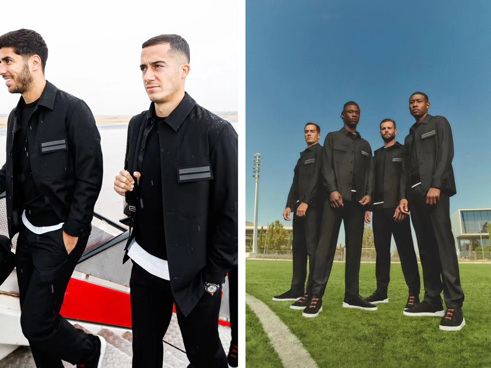 因为有着共同超越极限的价值观,所以Zegna为皇马球队打造的制服也脱离了常规的西装单品,而是以一系列品质高超的基本款单品,如夹克、衬衫、毛衣、裤装、球鞋在内,包圆了皇马球员的场外穿着。
