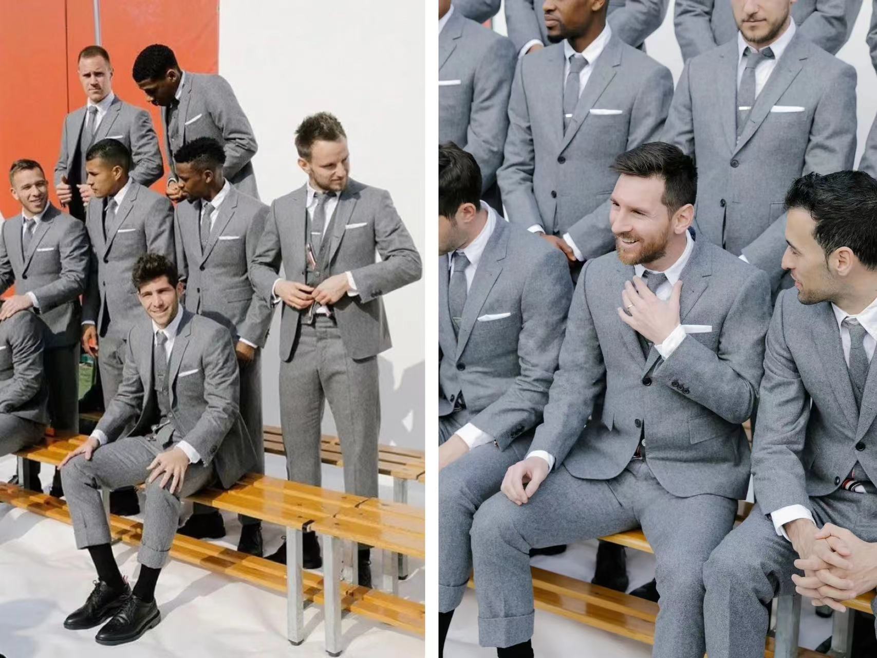 如果是梅西或者巴萨的球迷,或许会对2018年那段时光中巴萨球队统一的灰色和“小一号”剪裁的套装印象深刻 ,他们穿着的正是来自美国的时装品牌Thom Browne。这一年,Thom Browne与巴萨达成了为期三年的合作,为这个西甲足球豪门在场外、比赛之余和转场之时提供服装赞助,而巴萨也是第一支,还是唯一一支穿着Thom Browne的足球队。