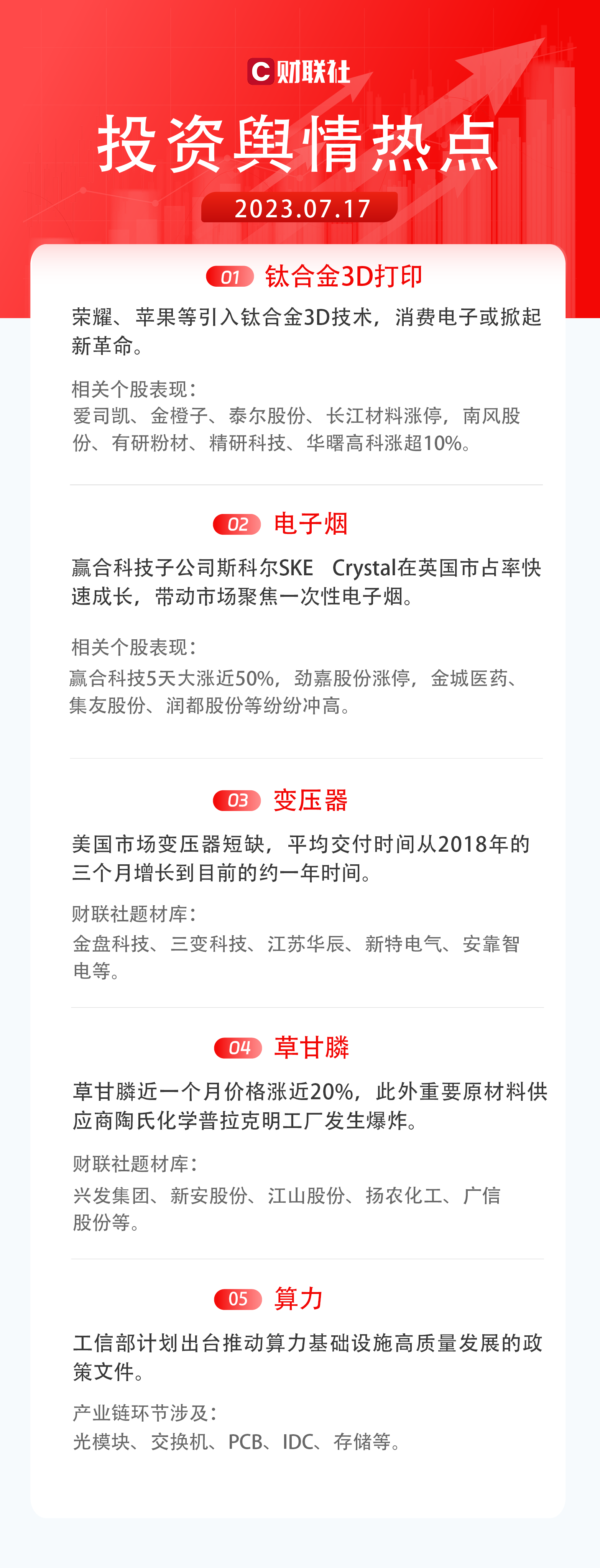 1)钛合金3D打印:荣耀、苹果等引入钛合金3D技术,消费电子或掀起新革命。