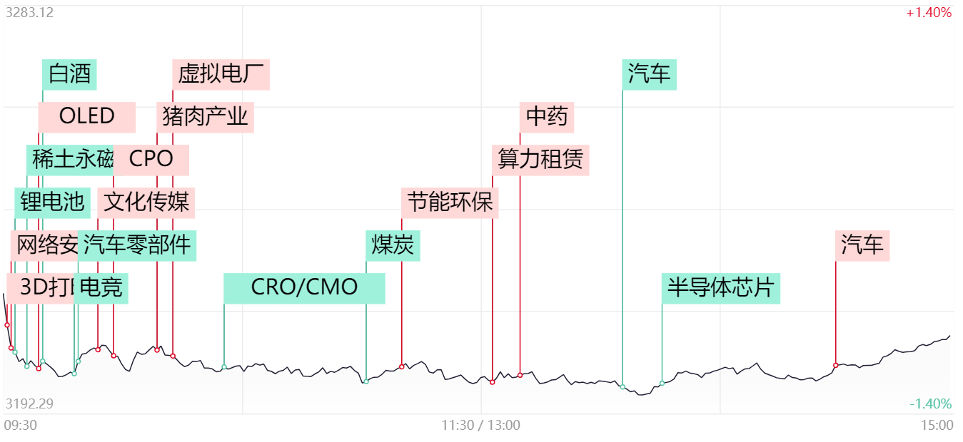 财联社7月18日电,上个交易日,三大股指集体低开,医药、锂电池、光伏等多个赛道板块跳水打压指数,多空双方围绕沪指3200点展开激烈争夺。沪深两市成交额8026亿,较上周五缩量1199亿。1)3D打印板块早盘强势崛起,爱司凯、金橙子、泰尔股份、长江材料涨停,南风股份、有研粉材、华曙高科涨超10%。天风国际分析师郭明錤发文表示,预计苹果2023年下半年新款Apple Watch Ultra的部分钛金属机构件将采用3D打印技术。2)面板产业链为首的消费电子板块继续活跃,翔腾新材2连板,万润科技3天2板,易德龙、凯旺科技、精研科技、天山电子大涨超10%。近日调研机构Omdia发布报告称,OLED显示器面板出货量将由2022年的16万片,增长到2023年的80万片,到2024年将达到174万片,两年时间实现10倍以上激增。3)网络安全近期持续表现,国华网安3连板并走出9天6板,榕基软件2连板,宏达新材涨停,中科信息大涨超10%。安信证券指出,数据安全是数据要素交易和变现的前提,重要性凸显。4)虚拟电厂板块近期屡有异动表现,积成电子、迦南智能、国电南自涨停,万胜智能大涨13%。国家能源局召开2023年电力调度交易与市场秩序厂网联席会议,下一步,国家能源局将全面加快建设全国统一电力市场体系,研究制定电力市场“1+N”基础规则制度。