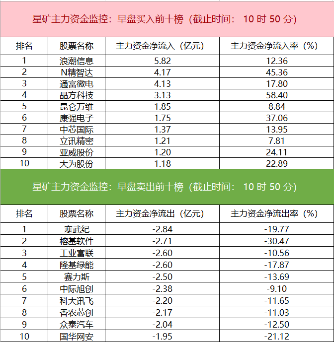 主力资金监控:浪潮信息净买入超5亿元