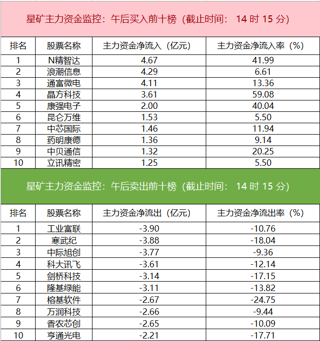 财联社7月18日电,财联社星矿数据显示,今日主力资金净流入交运设备、证券Ⅱ、商贸零售等板块,净流出计算机、通信、电新行业等板块,其中计算机板块净流出37.01亿元。个股方面,N精智达大涨,主力资金净买入4.67亿元,浪潮信息、通富微电、晶方科技获主力资金净流入居前;工业富联遭净卖出超3亿元,寒武纪、中际旭创、科大讯飞等主力资金净流出额居前。