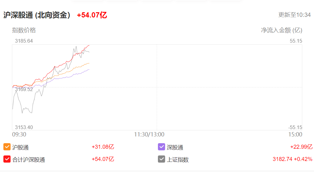 财联社7月21日电,截至发稿,北向资金净流入超50亿元,其中,沪股通净流入超30亿元,深股通净流入超20亿元。