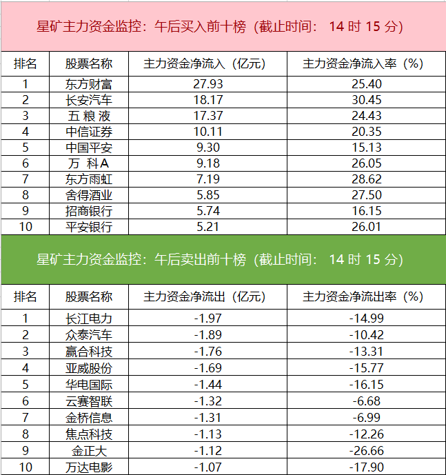 财联社7月25日电,财联社星矿数据显示,今日主力资金净流入非银金融、证券Ⅱ、食品饮料行业等板块,净流出农林牧渔、基础化工、国防军工等板块,其中非银金融板块净流入114.77亿元。个股方面,东方财富大涨,主力资金净买入27.93亿元,长安汽车、五粮液、中信证券获主力资金净流入居前;长江电力遭净卖出超1亿元,众泰汽车、赢合科技、亚威股份等主力资金净流出额居前。