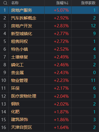财联社7月26日电,大盘全天震荡调整,三大指数均小幅下跌。盘面上,地产股持续大涨,金科股份、华远地产、荣盛发展等10多股涨停;基建、城镇化概念股继续活跃,山水比德、清研环境、苏州规划均20CM涨停。化工化肥股盘中拉升,清水源涨超10%,六国化工涨停。消费股展开反弹,国光连锁上演“地天板”,人人乐、国芳集团涨停。钢铁股午后异动,凌钢股份、重庆钢铁涨停。此外,近期低价股表现活跃,今日涨停个股中近20只个股股价低于5元。下跌方面,AI概念股陷入调整,彩讯股份、拓维信息等跌超5%。总体上个股跌多涨少,两市超2800只个股下跌。沪深两市今日成交额7922亿,较上个交易日缩量1559亿。板块方面,房地产、新型城镇化、磷化工、钢铁等板块涨幅居前,减速器、一体化压铸、液冷服务器、手机游戏等板块跌幅居前。截至收盘,沪指跌0.26%,深成指跌0.47%,创业板指跌0.08%。北向资金全天净买入5.15亿元,其中沪股通净买入9.51亿元,深股通净卖出4.36亿元。