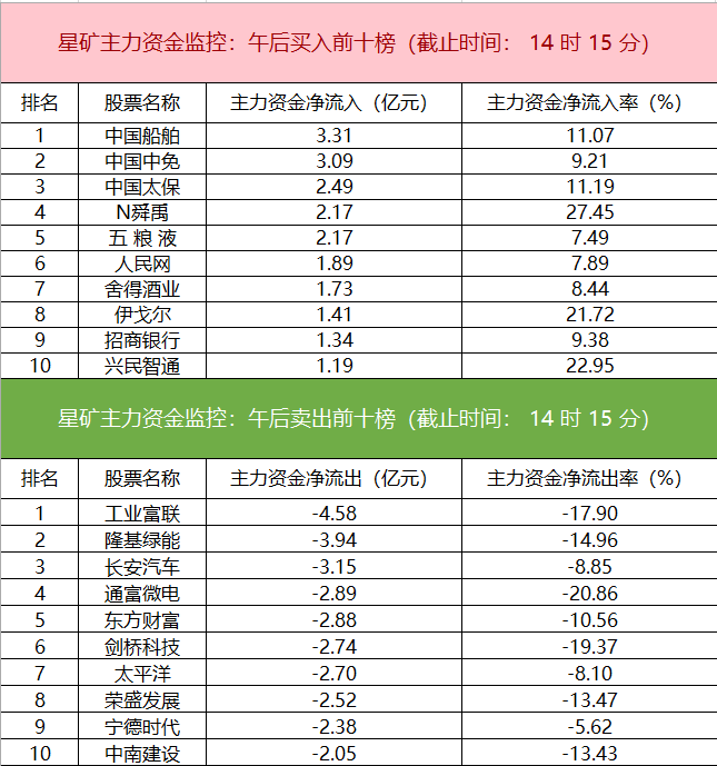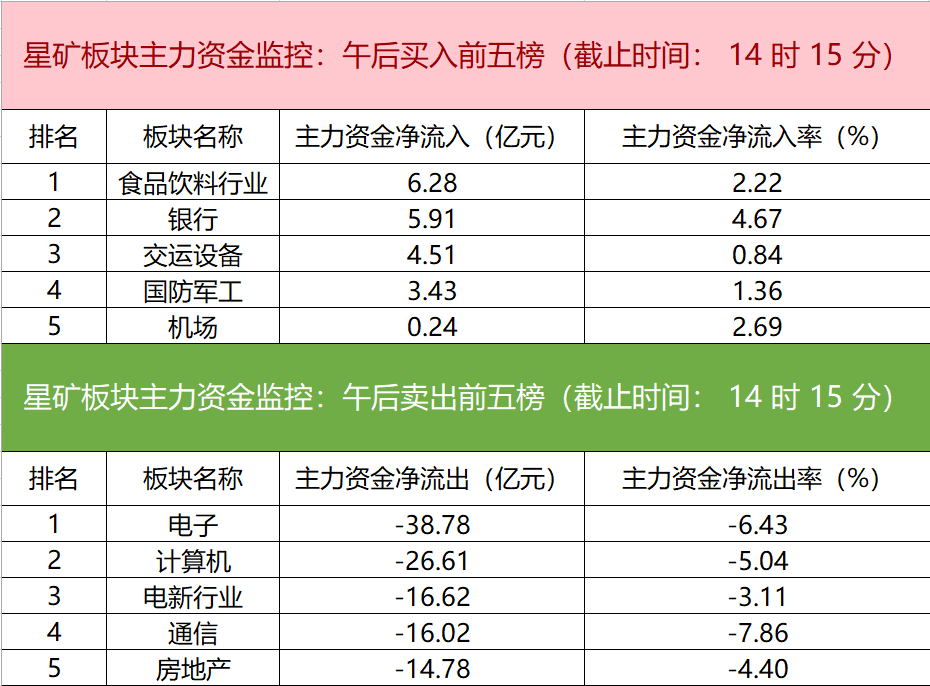 财联社7月27日电,财联社星矿数据显示,今日主力资金净流入食品饮料行业、银行、交运设备等板块,净流出电子、计算机、电新行业等板块,其中电子板块净流出38.78亿元。个股方面,中国船舶上涨,主力资金净买入3.31亿元,中国中免、中国太保、N舜禹获主力资金净流入居前;工业富联遭净卖出超4亿元,隆基绿能、长安汽车、通富微电等主力资金净流出额居前。