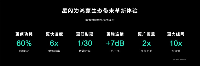 《科创板日报》4日讯,华为推出NearLink星闪功能。华为常务董事余承东今日表示,依托华为30余年无线通信技术积累,将技术应用于近场通信当中。据了解,星闪(NearLink)汇聚了国内外300多家头部企业和机构的集体智慧,用一套标准集合蓝牙和WIFI等传统无线技术的优势,适用于消费电子、智能家居、新能源汽车、工业智造等多种场景为鸿蒙万物互联提供强大连接能力。相比蓝牙技术,功耗降低60%、传输速率提升6倍,具备更低时延、更稳定连接抗干扰能力,覆盖距离提升2倍,连接数提升10倍。