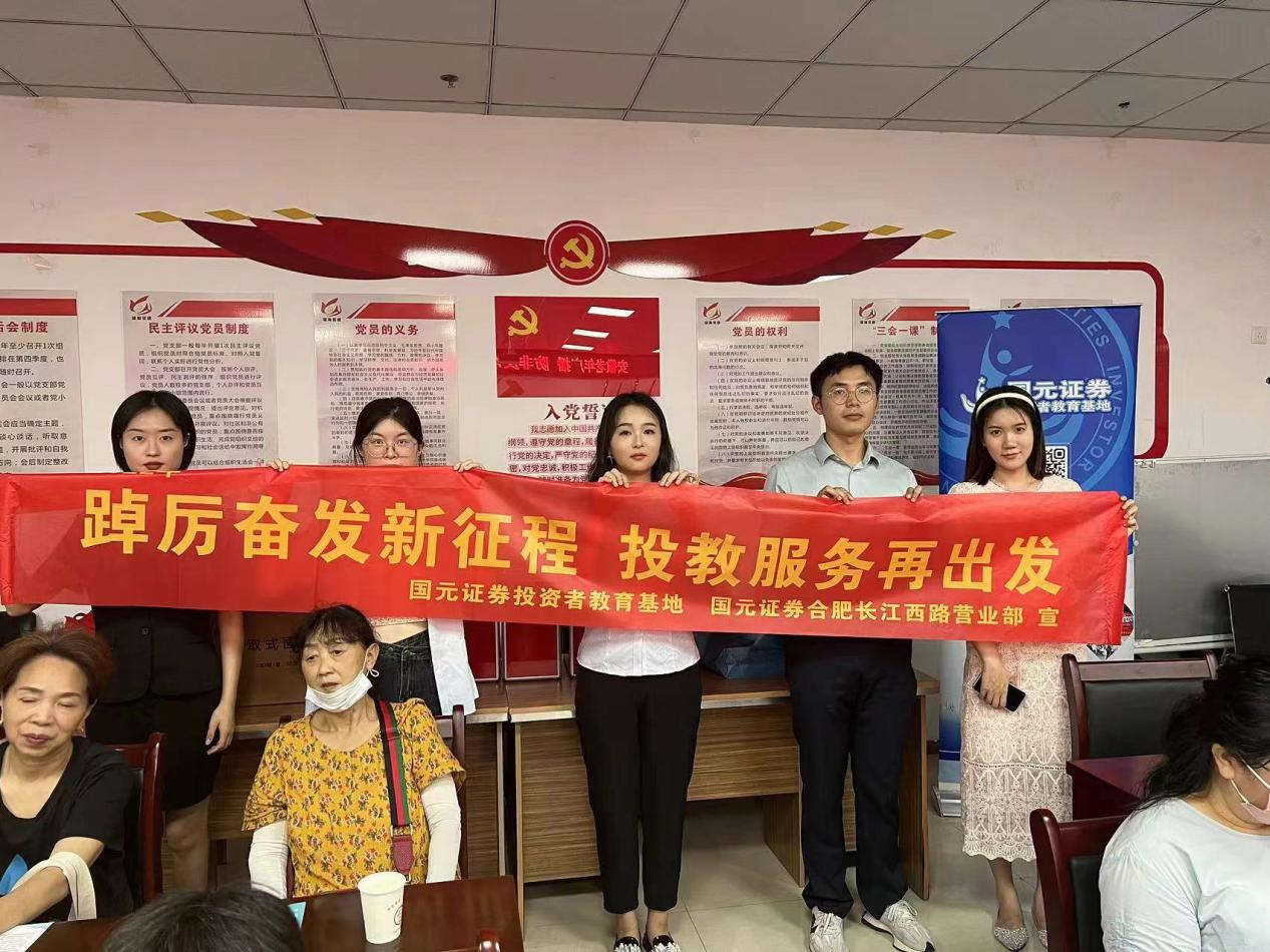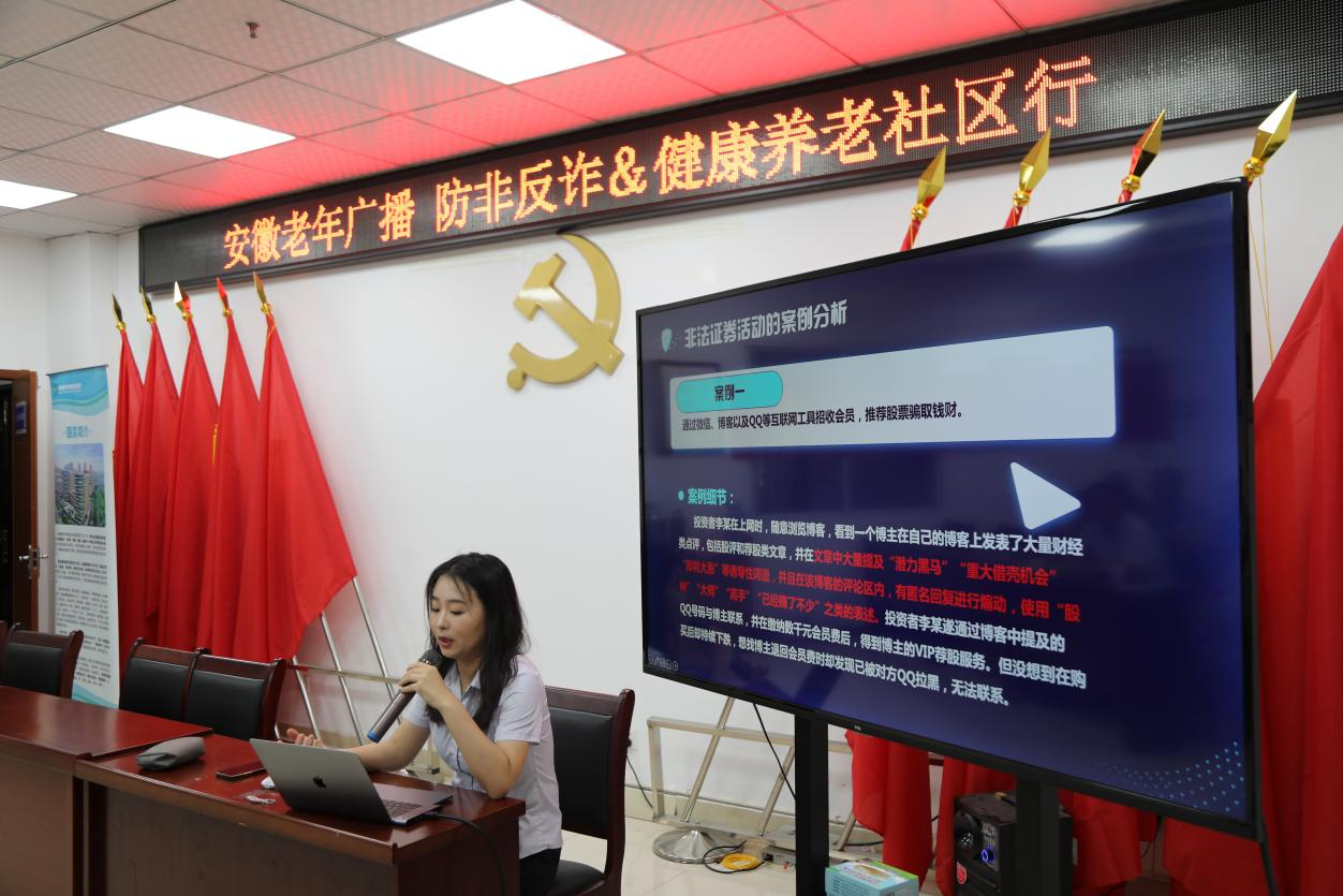 为进一步提高社区居民提高反诈防骗自我保护意识和能力,全力构筑“全民反诈”防线,2023年7月18日下午,国元证券投教基地联合安徽广播电视台老年广播和国元证券长江西路证券营业部,走进合肥市瑶海区方庙街道香江佳元社区党群服务中心,开展“防非反诈”讲座进社区活动。
