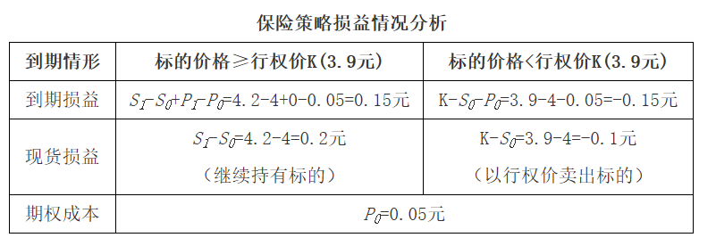 假设期初标的价格S0=4元,行权价K=3.9元的近月认沽期权价格P0=0.05元。通过持有标的和买入认沽期权可构建保险策略。