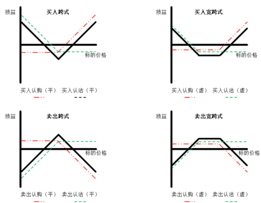 (1)买入跨式/买入宽跨式:买入平值认购+买入平值认沽/买入虚值认购+买入虚值认沽