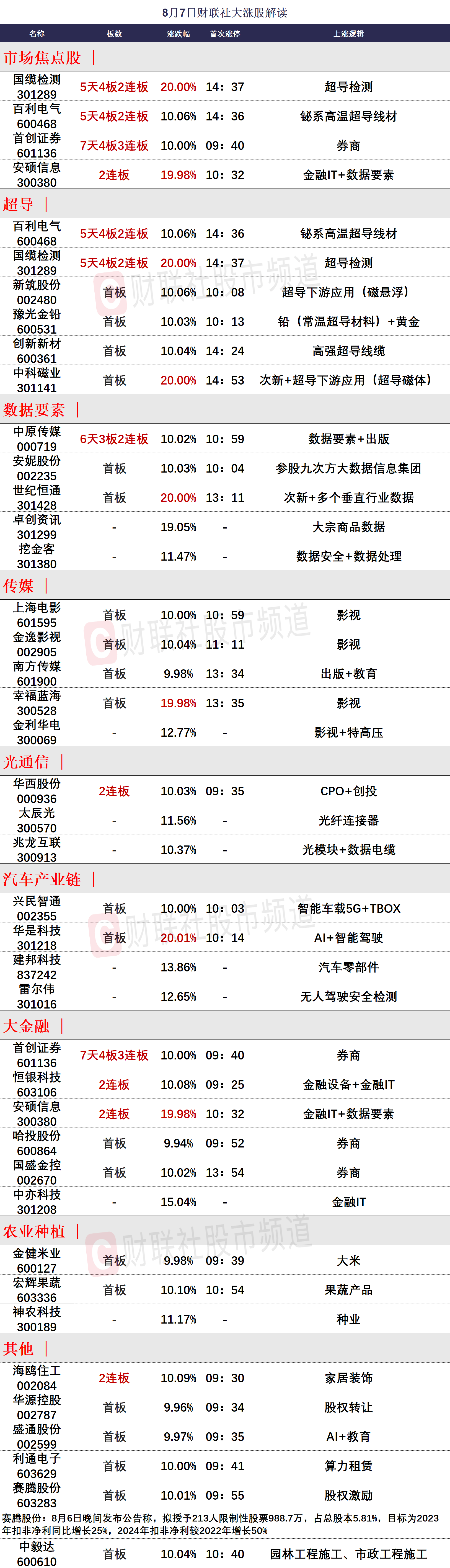 8月7日涨停分析