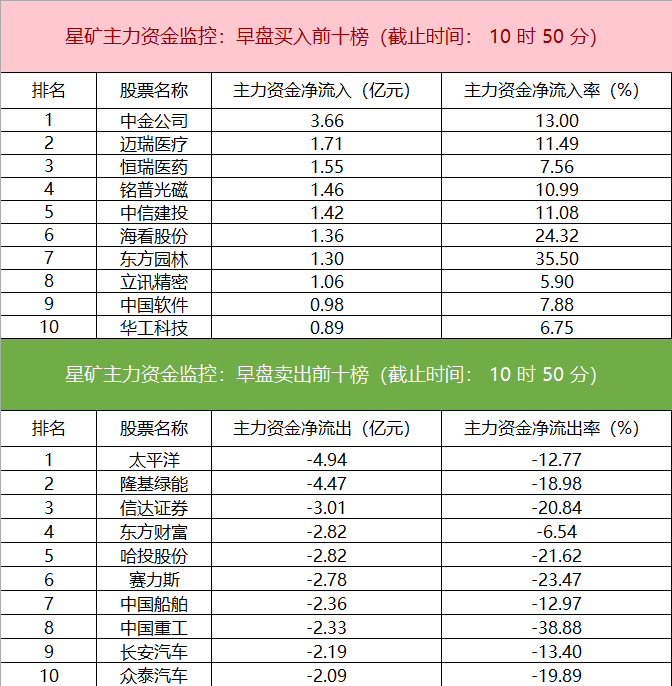 主力资金监控:中金公司净买入超3亿元