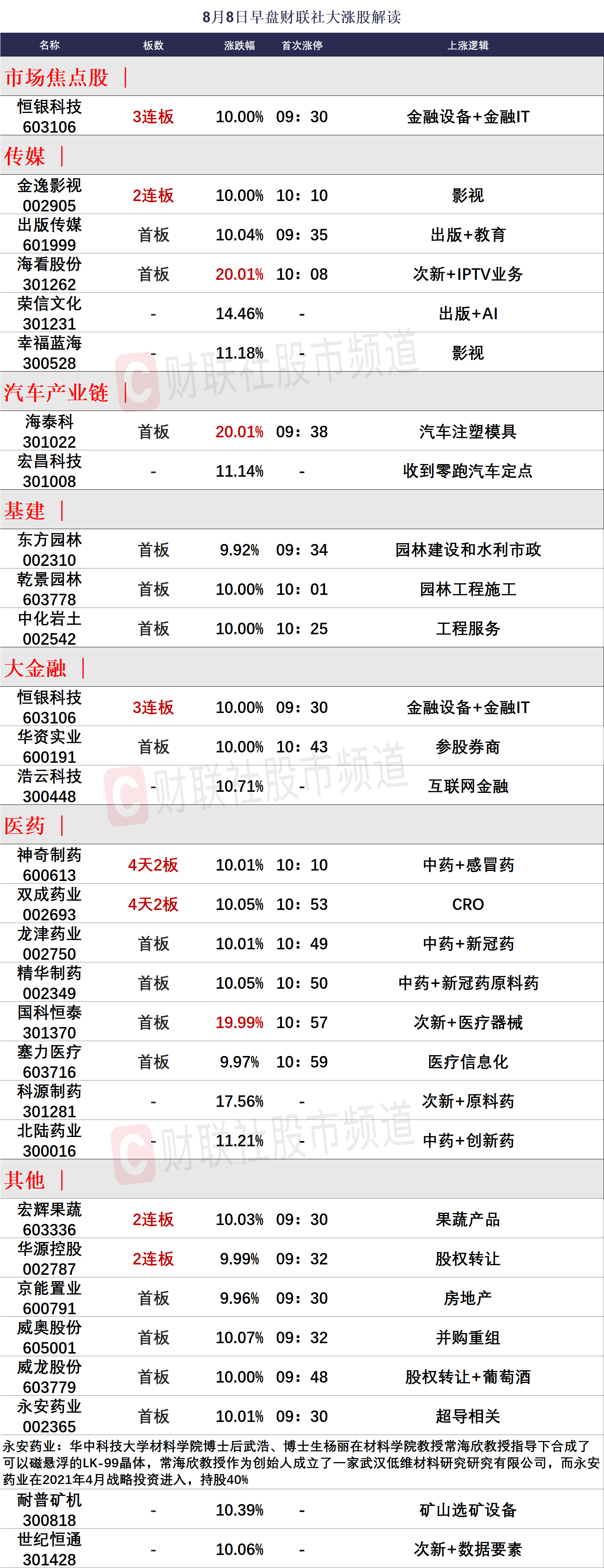 今日午盘两市共21股涨停,连板股总数4只,8股封板未遂,封板率为72%(不含ST股、退市股及未开板新股)。个股方面,大金融板块恒银科技3板,文化传媒板块金逸影视2板、海看股份创业板首板,医药股神奇制药4天2板、双成药业4天2板。