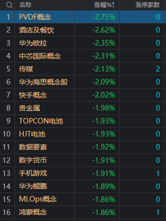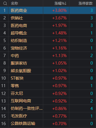 财联社8月15日电,市场早盘震荡回落继续调整,创业板指领跌。盘面上,医药股再度活跃,SPD方向领涨,华人健康、开开实业涨停。供销社概念股开盘大涨,天禾股份、天鹅股份涨停。超导概念股震荡反弹,创新新材涨停。人民币贬值相关板块盘中异动,雅艺科技、源飞宠物、麒盛科技涨停。下跌方面,光伏、半导体等板块陷入调整,晶科能源、明微电子跌超10%。总体上个股跌多涨少,两市近3500只个下跌。沪深两市今日成交额4277亿,较上个交易日缩量326亿。板块方面,SPD、供销社、超导概念、纺织服装等板块涨幅居前,中芯国际概念、传媒、HJT电池、数据要素等板块跌幅居前。截至收盘,沪指跌0.29%,深成指跌0.85%,创业板指跌0.99%。北向资金上午净卖出83.99亿元,其中沪股通净卖出25.26亿元,深股通净卖出58.73亿元。