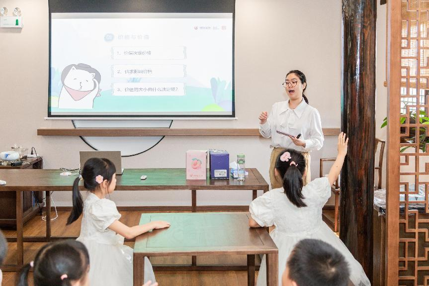 “小朋友们,你们知道价值和价格有什么区别吗?”“价值就是一件东物品的用处!”“价格就是商品值多少钱!”在参观完无锡金融文史馆后,投教基地金融讲师给小朋友们带来一堂别开生面的财商课堂。现场的小朋友纷纷化身“小小金融家”争先恐后地回答讲师的提问,气氛十分活跃。