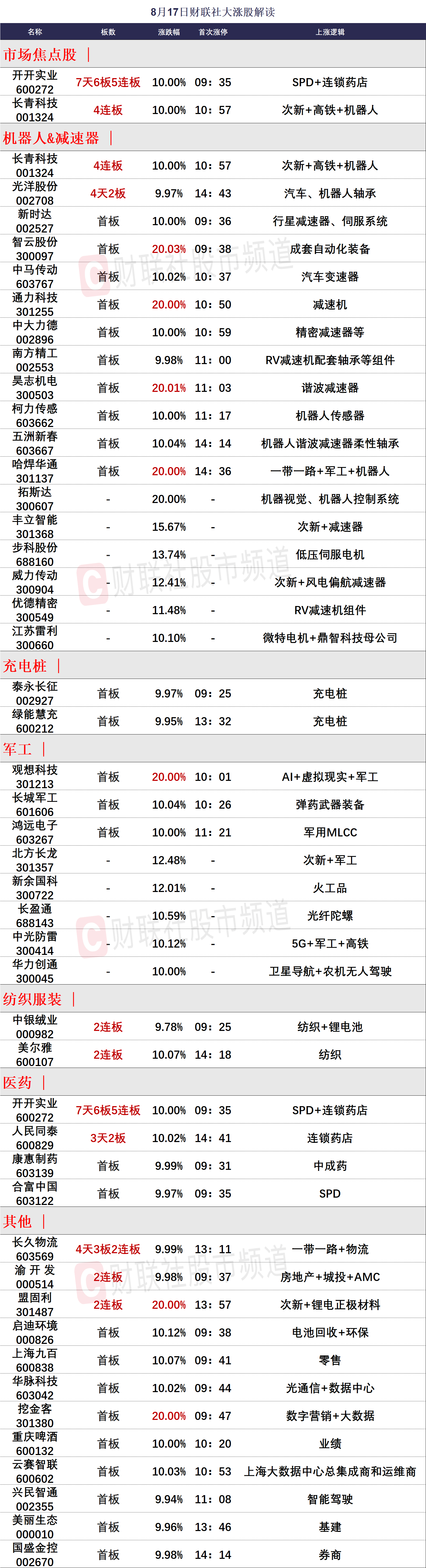 今日共35股涨停,连板股总数7只,9股封板未遂,封板率为79%(不含ST股、退市股及未开板新股)。个股方面,医药商业板块开开实业7天6板、人民同泰3天2板,机器人概念股长青科技4板、光洋股份4天2板、通力科技创业板首板,物流股长久物流4天3板,次新股盟固利创业板2板,纺织股中银绒业2板、美尔雅2板,房地产+AMC的渝开发2板,军工股观想科技创业板首板。今日收涨个股3893只,收跌个股1013只。