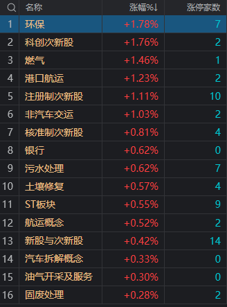 财联社8月18日电,大盘全天震荡调整,三大指数均跌超1%,深成指再创年内新低,科创50指数早盘高开1.53%,尾盘翻绿。盘面上,新股与次新股集体大涨,N威马、N锴威特均涨超100%,盟固利、金杨股份、碧兴物联等超10股涨停。环保股震荡走强,建工修复20CM涨停,启迪环境、正和生态涨停。一带一路概念股表现活跃,高铁电气、南矿集团、中铁特货涨停。下跌方面,医药股集体调整,赛隆药业、启迪药业等跌停。券商股冲高回落,信达证券、华林证券跌超7%。总体上个股跌多涨少,两市近4000只个股下跌。沪深两市今日成交额7446亿,较上个交易日放量48亿。板块方面,次新股、环保、燃气、银行等板块涨幅居前,医药商业、中药、减肥药、手机游戏等板块跌幅居前。截至收盘,沪指跌1%,深成指跌1.75%,创业板指跌1.31%。北向资金连续10个交易日净卖出,创历史最长连续净卖出天数记录,其中北向资金今日全天净卖出85.22亿元,其中沪股通净卖出37.23亿元,深股通净卖出47.99亿元。