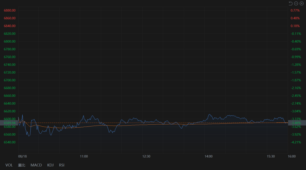 财联社8月19日电,热门中概股普跌,纳斯达克中国金龙指数跌3.48%,本周累跌7.07%。唯品会跌超8%,蔚来跌超7%,哔哩哔哩跌超6%,爱奇艺、理想汽车跌超5%,京东、微博、小鹏汽车跌超4%,百度、拼多多、腾讯音乐、网易跌超3%,阿里巴巴跌超2%,富途控股、满帮跌超1%。