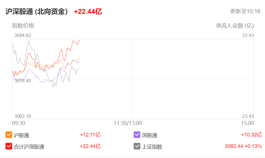 财联社8月24日电,截至目前,北向资金净流入超20亿元,其中,沪股通净流入超12亿元,深股通净流入超10亿元。