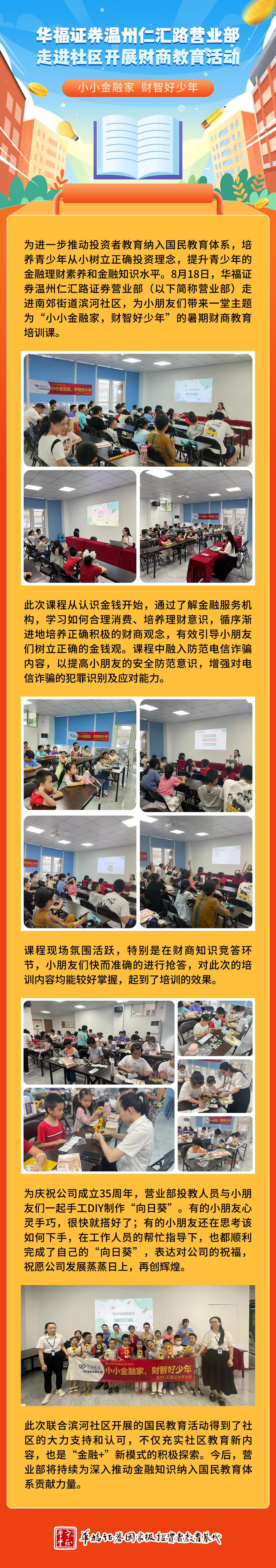 小小金融家 财智好少年 ——华福证券温州仁汇路证券营业部走进社区开展财商教育活动