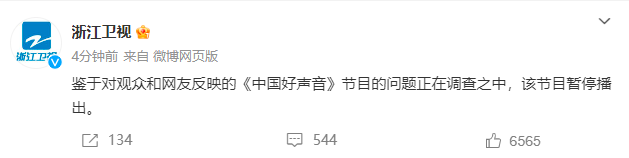 浙江卫视:《中国好声音》节目暂停播出