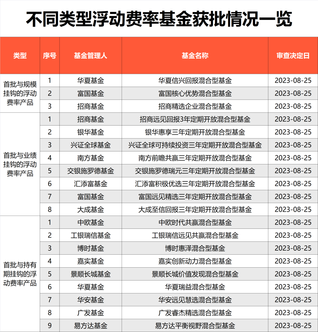 财联社8月26日电,证监会官网8月26日显示,首批与基金规模挂钩、与基金业绩挂钩、与投资者持有时间挂钩的浮动费率产品已经获批。从产品设计方面来看,首先,与投资者持有时间挂钩产品,按照投资者持有产品份额时间分档收取管理费,投资者持有份额时间越长,支付的费用水平越低,有利于引导投资者开展长期投资。其次,与基金规模挂钩产品按照基金管理规模分档收取管理费,产品管理规模越大,适用的费用水平越低。最后,与基金投资业绩挂钩产品按照基金业绩表现分档收取管理费,费率水平双向浮动,收益表现不达约定水平时,管理费水平适当向下浮动;收益表现超越约定基准时,管理费水平适当向上浮动。