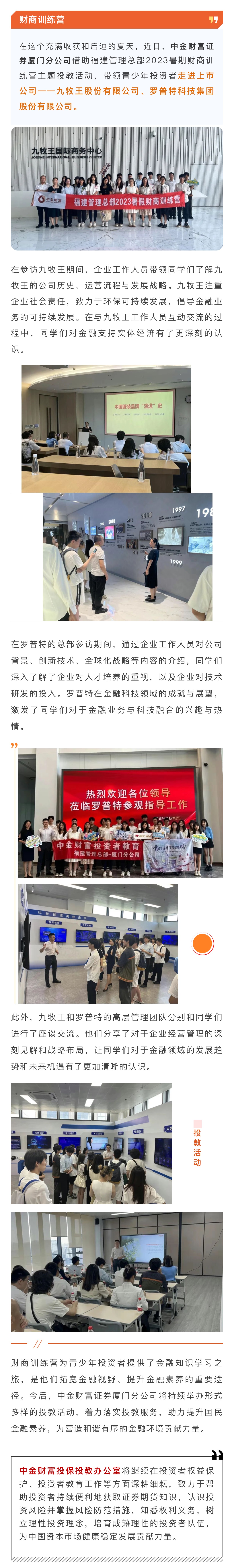 投教活动 | 厦门分公司开展“走进上市公司——九牧王、罗普特”主题投教活动