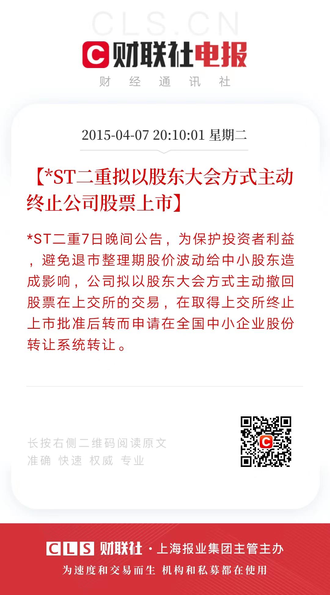 财联社8月29日电,经纬纺机公告,由于市场变化,经纬纺机经营面临重大不确定性,可能会对公司造成重大影响。为保护中小股东利益,经公司股东中国恒天集团有限公司、中国恒天控股有限公司提议,并经公司董事会审议通过,公司拟以股东大会决议方式主动撤回A股股票在深圳证券交易所的上市交易,并转而申请在全国中小企业股份转让系统转让。现金选择权的行权价格为9.24元/股。公司股票自2023年8月30日(星期三)开市起复牌。小财注:截至8月25日收盘,经纬纺机报8.05元/股,此次公告现金选择权的行权价较收盘价溢价14.78%。追溯历史来看,*ST二重2015年成为A股首例主动退市公司,上一家主动退市的A股公司为*ST上普。数据显示,经纬纺机为中融信托第一大股东,持股比例37.47%。经纬纺机目前总市值56.68亿元,业绩方面,2023年一季度实现营收25.18亿元,净利润9748.06万元。