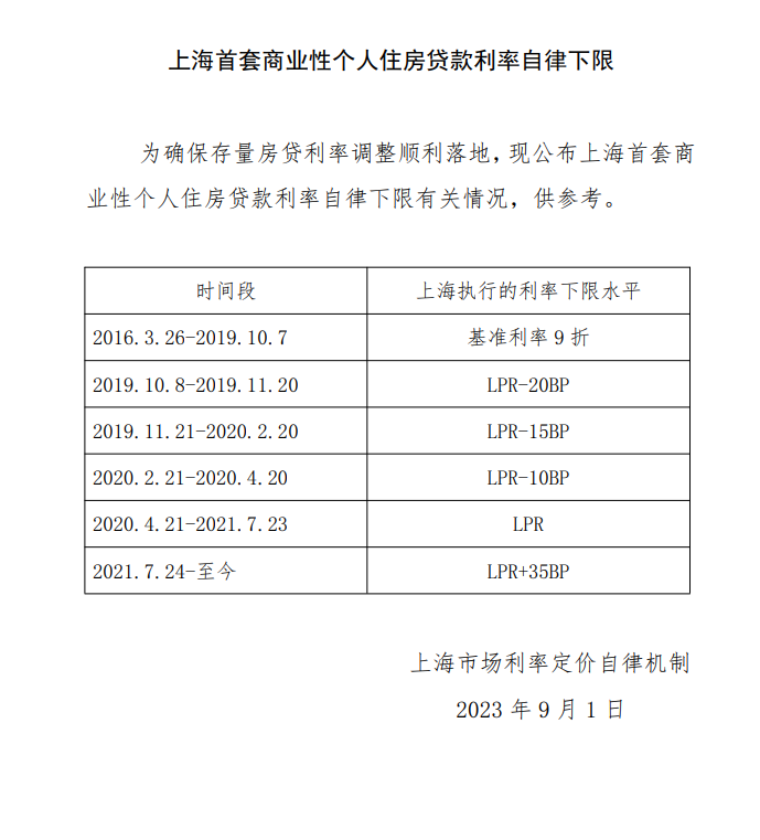 央行上海总部:2021.7.24-至今上海执行的利率下限水平为LPR+35BP