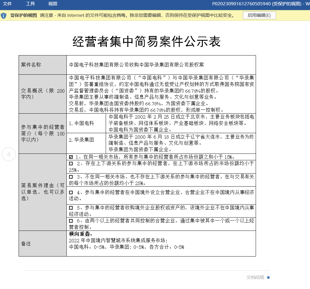 财联社9月4日电,创业板易华录午后继续拉升,盘中一度涨超16%。消息面上,北京市市场监督管理局发布“中国电子科技集团有限公司收购中国华录集团有限公司股权案”,公示期为2023年9月1日至2023年9月10日。