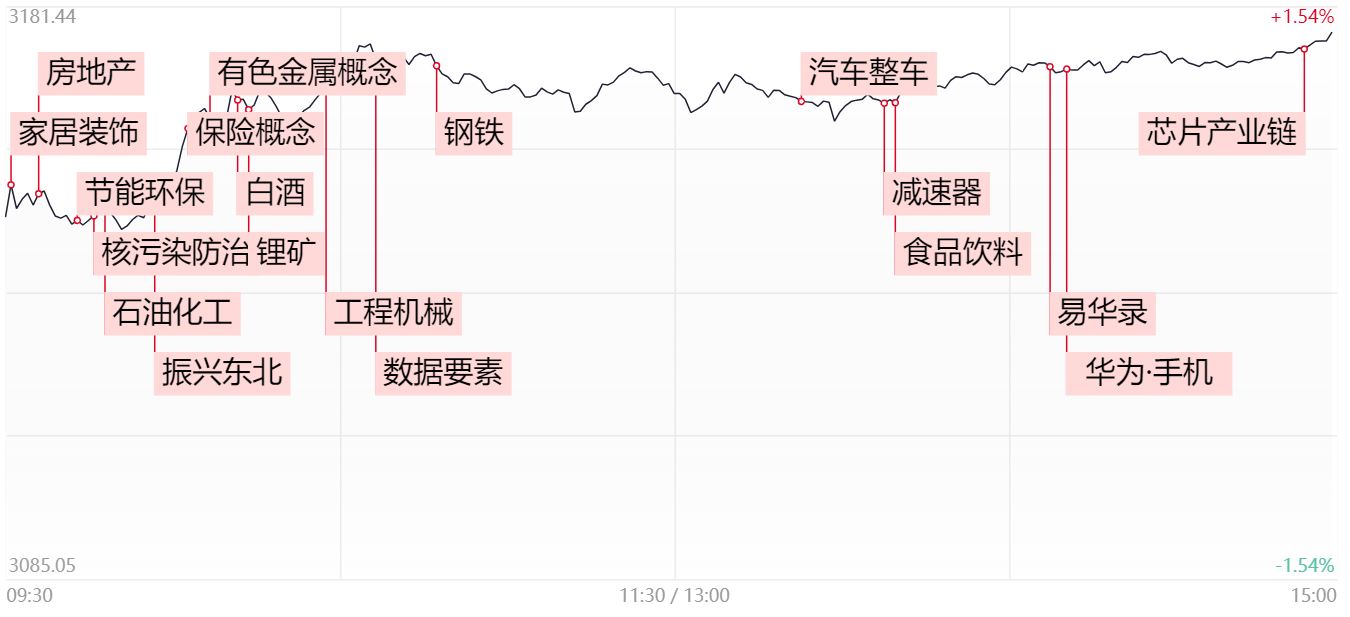 财联社9月5日电,上个交易日,三大股指大幅高开,此后房地产及家居产业链、煤炭、有色、钢铁等顺周期板块拉升带动沪深主板迅速扩大涨幅至1%以上。午后华为产业链以及半导体等科技方向先后发力,推动股指高位强势震荡,沪深主板指数双双收涨超1%。沪深两市今日成交额8849亿,较上周五放量1396亿。1)家居装饰板块在上周五大涨基础上继续向上发力,我乐家居6连板,梦天家居、中装建设2连板,顶固集创、坚朗五金等多股纷纷涨停。根据“2023消费提振年”总体安排,商务部于2023年9~12月在全国范围内组织开展“家居焕新消费季”活动。2)房地产板块有所分化,中迪投资7天5板2连板,新大正6天3板,世联行、我爱我家、三湘印象等多股涨停,但板块总体高开低走,午后天房发展逼近跌停。消息面上,上海、北京也官宣执行“认房不认贷”政策,上海“认房不认贷”执行首日,有楼盘访客量增近4倍;北京多楼盘连夜涨价。3)煤炭、有色、钢铁、石油、化工等一系列顺周期板块延续强势,煤炭板块云煤能源2连板,有色板块北方铜业、吉翔股份、安宁股份、化工板块鲁西化工、阳煤化工等多股涨停。海外三大动力煤指数从7月底以来持续上涨,欧洲ARA大涨18%、南非理查德大涨26%、澳洲纽卡高卡煤32%;在减产预期的推动下,布伦特原油价格一度涨至88.90美元,WTI原油价格则一度触及去年11月以来的最高盘中水平。4)华为产业链炒作进一步扩散,手机外,汽车、鸿蒙、算力、信创等细分均获得资金挖掘走出补涨行情,捷荣技术4连板,华映科技3天2板,拓维信息走出4天2板,常山北明涨停,世纪鼎利、软通动力、中富电路等多股涨超10%。根据相关媒体报道,华为已经将Mate60Pro加单至1500万到1700万台。