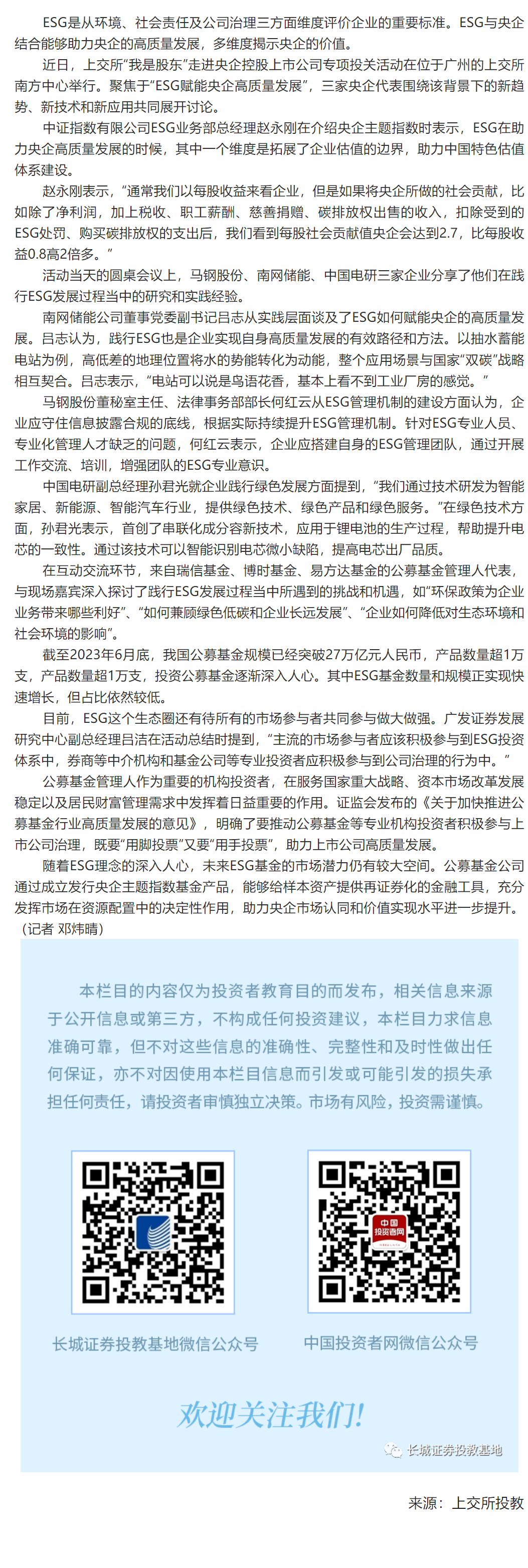 【金融知识宣传月】媒体视角丨上市公司热议ESG赋能央企高质量发展 生态圈仍需多方共建
